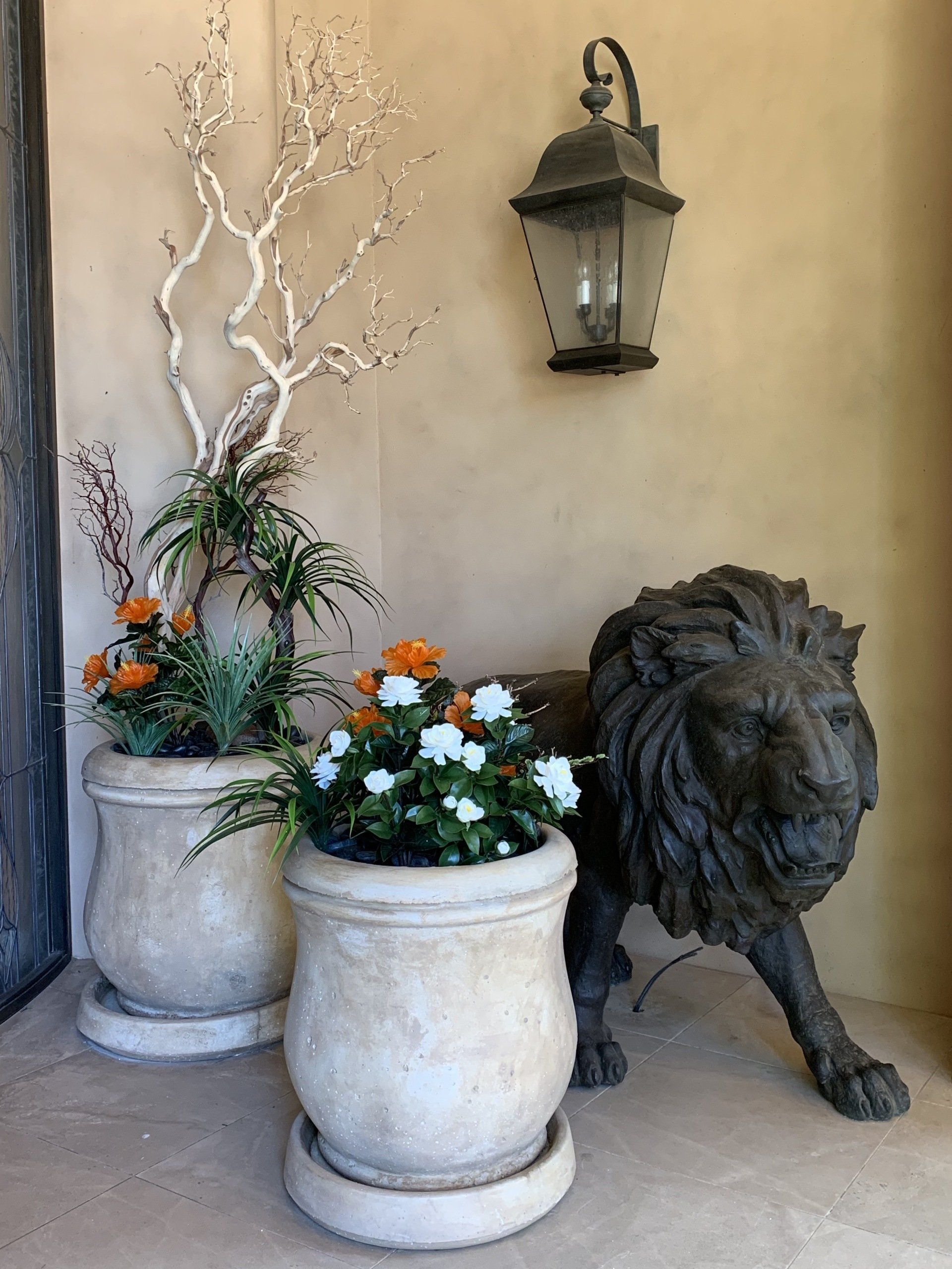 We also now create for outdoor patios and containers using a new line of super poly blend materials that last for years even in the hot AZ sunshine!!