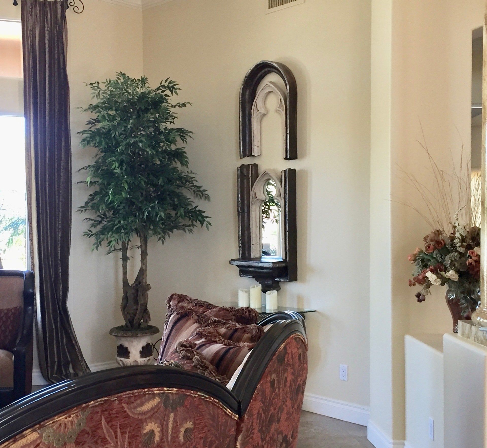 Bring us your concept, interior décor colors, fabric swatches, room photos and space measurements and discuss your ideas and plans. We want to create something special and unique for you! We only use high quality materials, florals, and pieces in our arrangements.