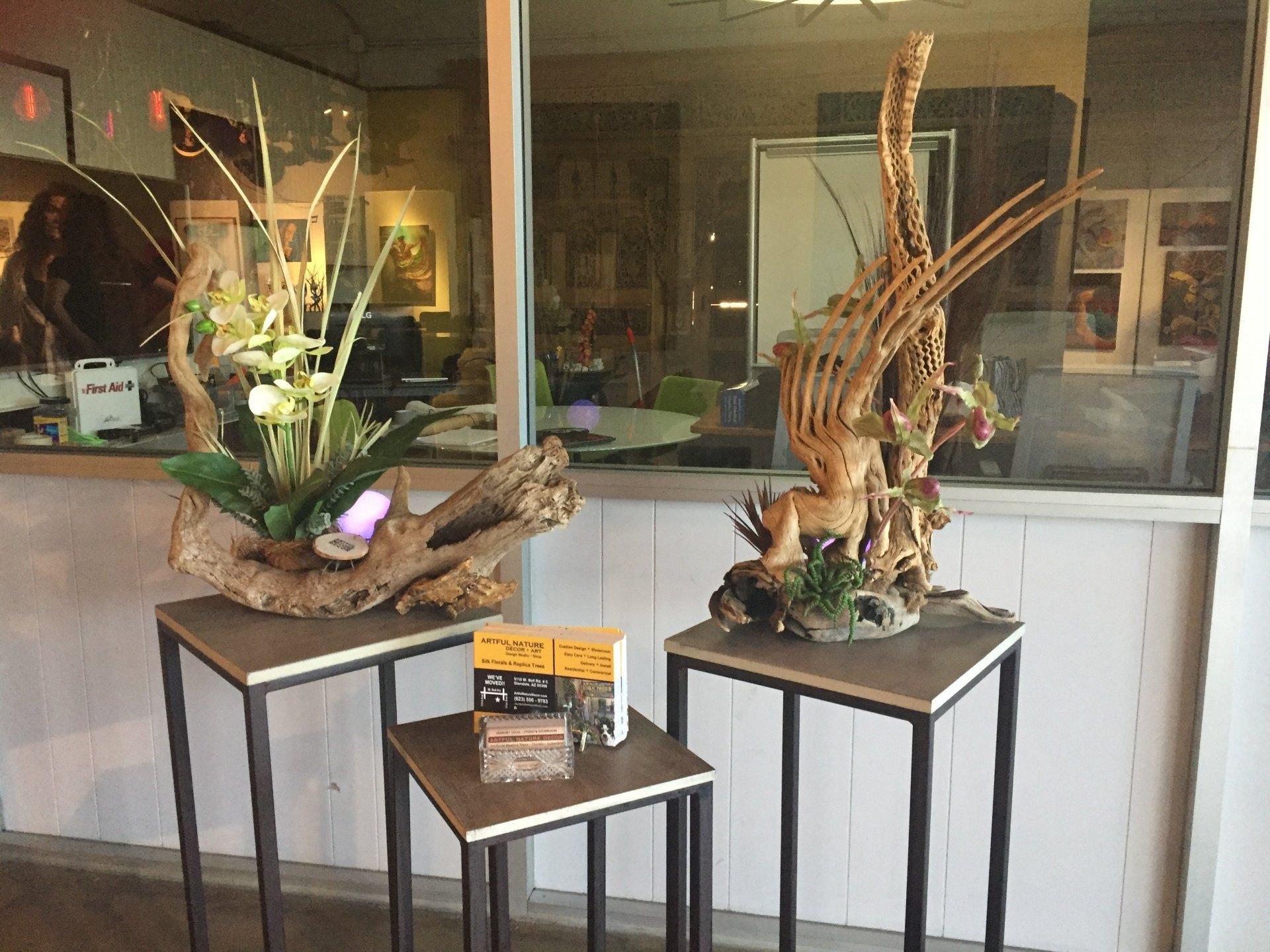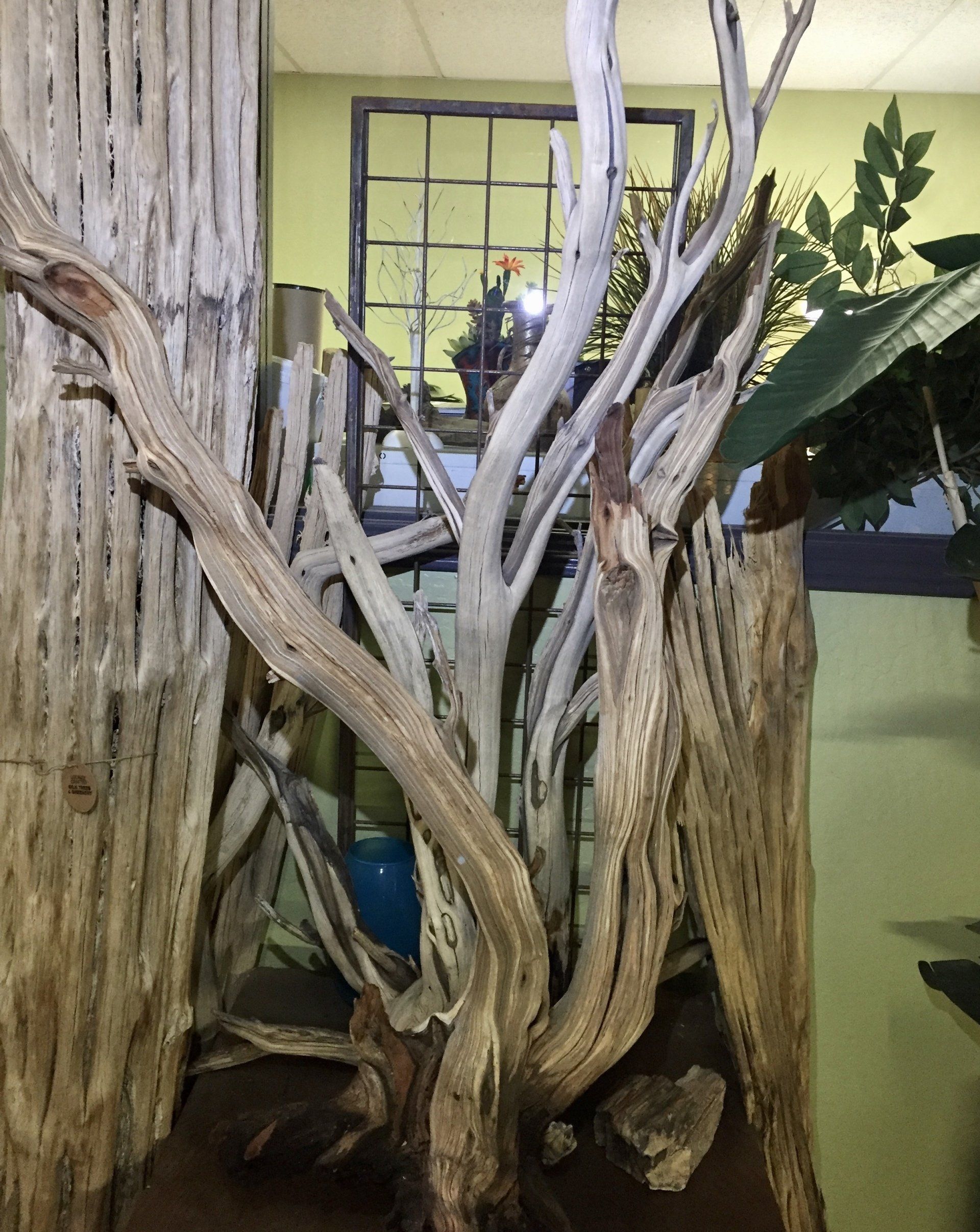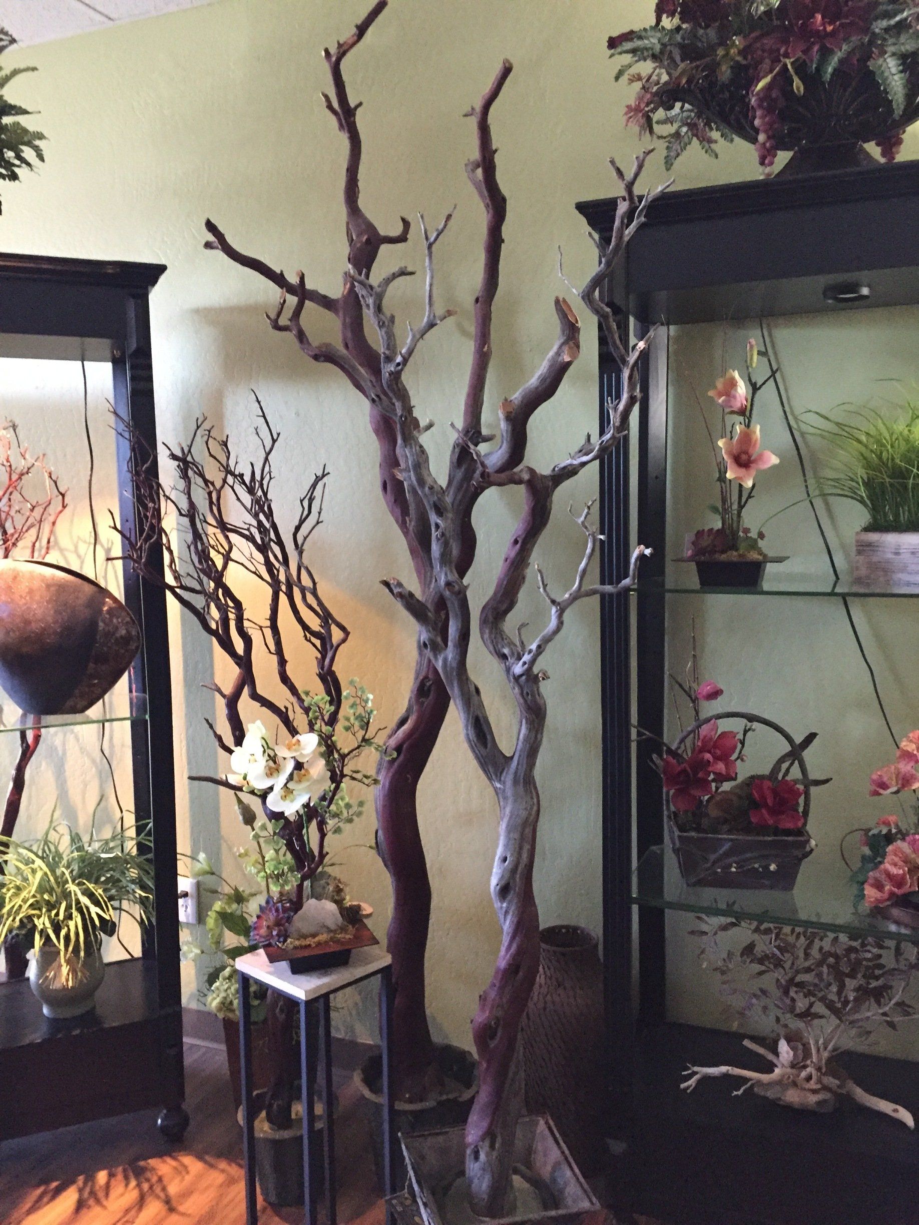Each tree is carefully uniquely crafted to look natural and enhance your home's nature decor. We use a variety of different woods: Manzanita, Cholla, Dragonwood, Curly Willow, Birch, Pine, Yucca, Palm, Saguaro, plus others depending on my current collection. We offer a variety of container /pot styles to choose from and many custom colors as well. From modern to traditional design.. we can create a special addition to your home or office. Come explore and see first hand -- the difference in our quality and service. We deliver, set up in place and accent with the finishing touches of moss, stones and bark.