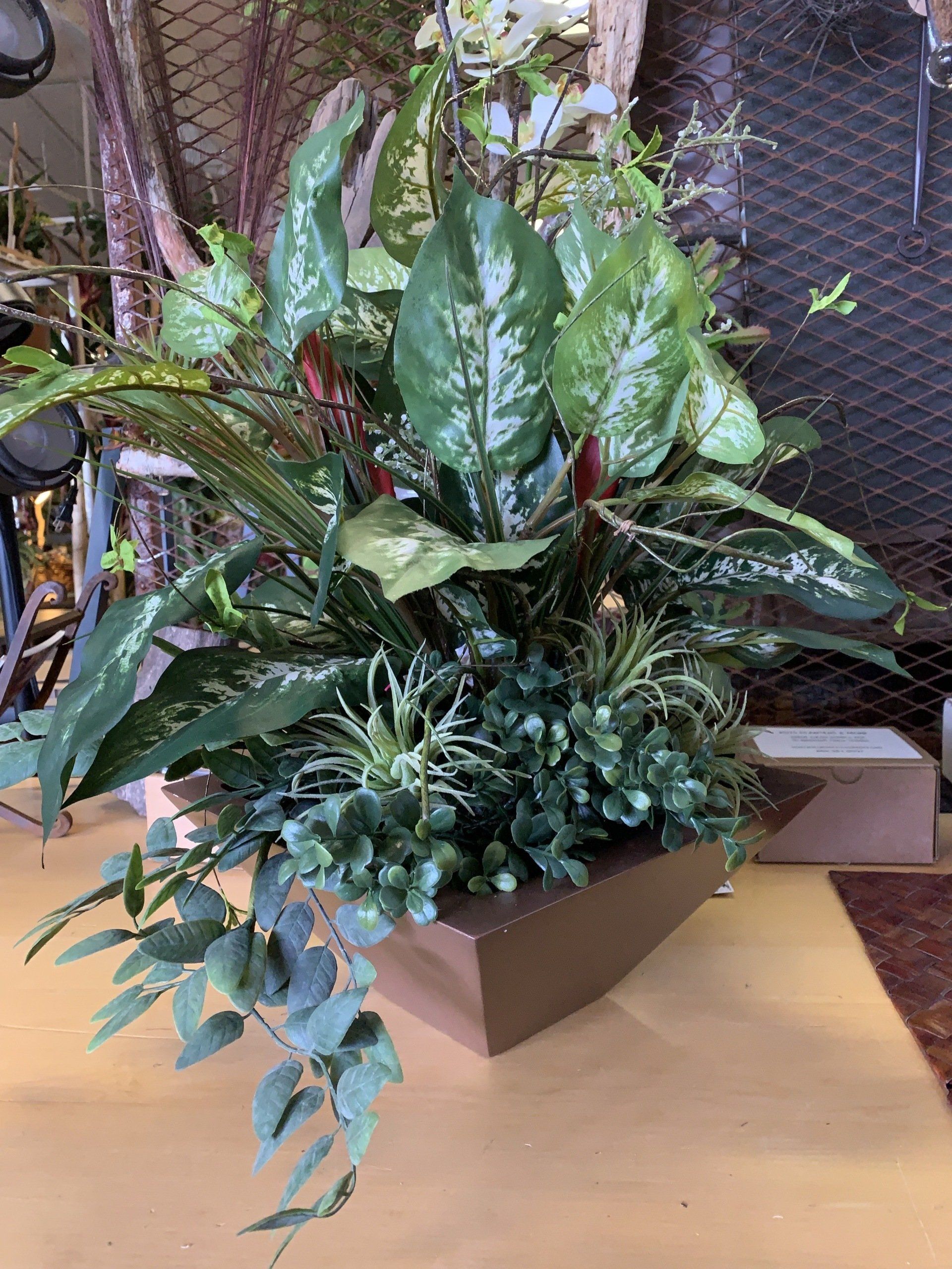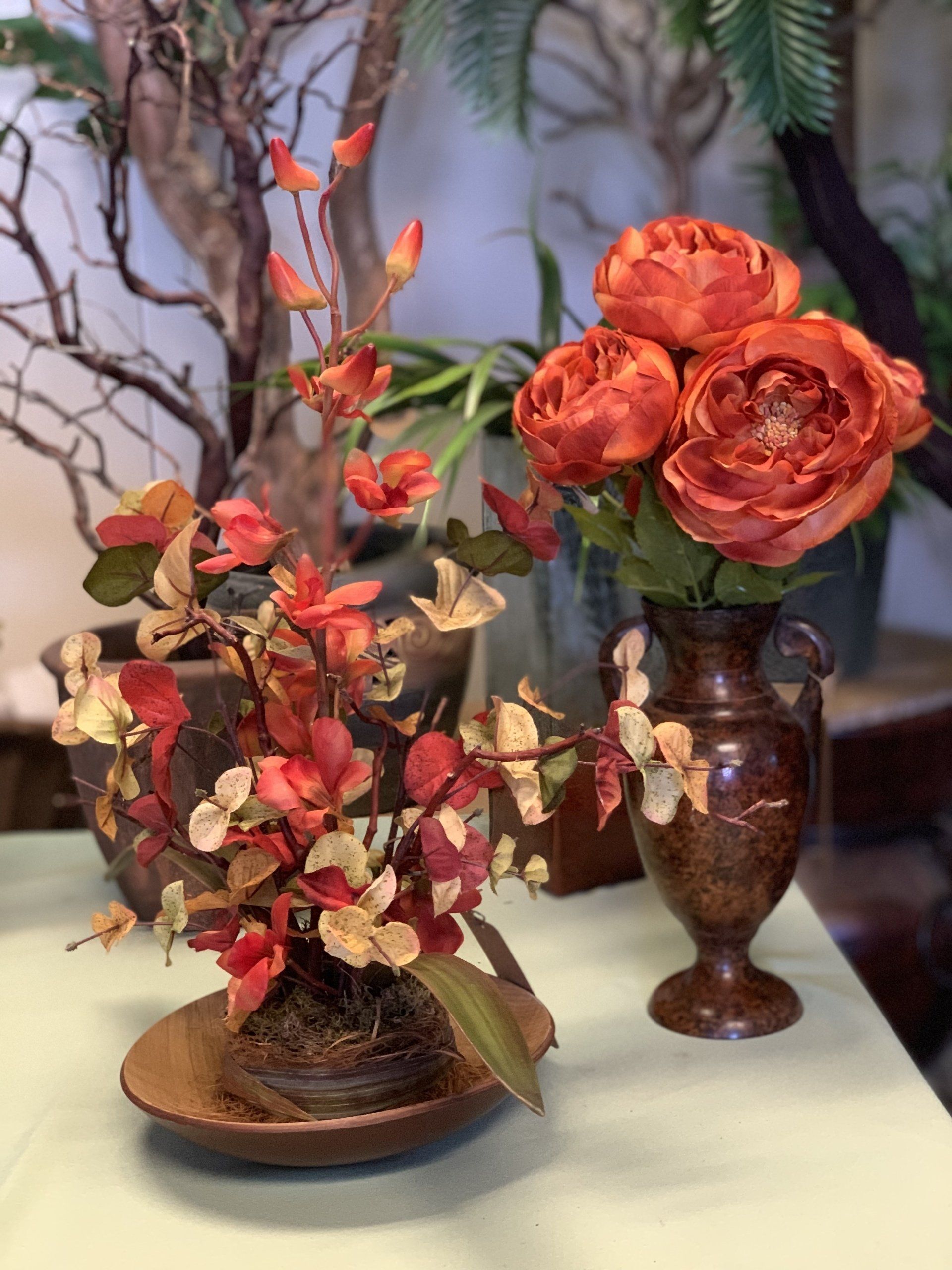 Our plant and greenery arrangements are uniquely crafted to look natural and life-like. We offer a wide variety of container, vase and pot styles or you can bring us a container that you have on hand or have purchased elsewhere. Our replica silks are beautiful high quality & long lasting. See and feel the difference. We love creating special nature decor accents to add to your environment.